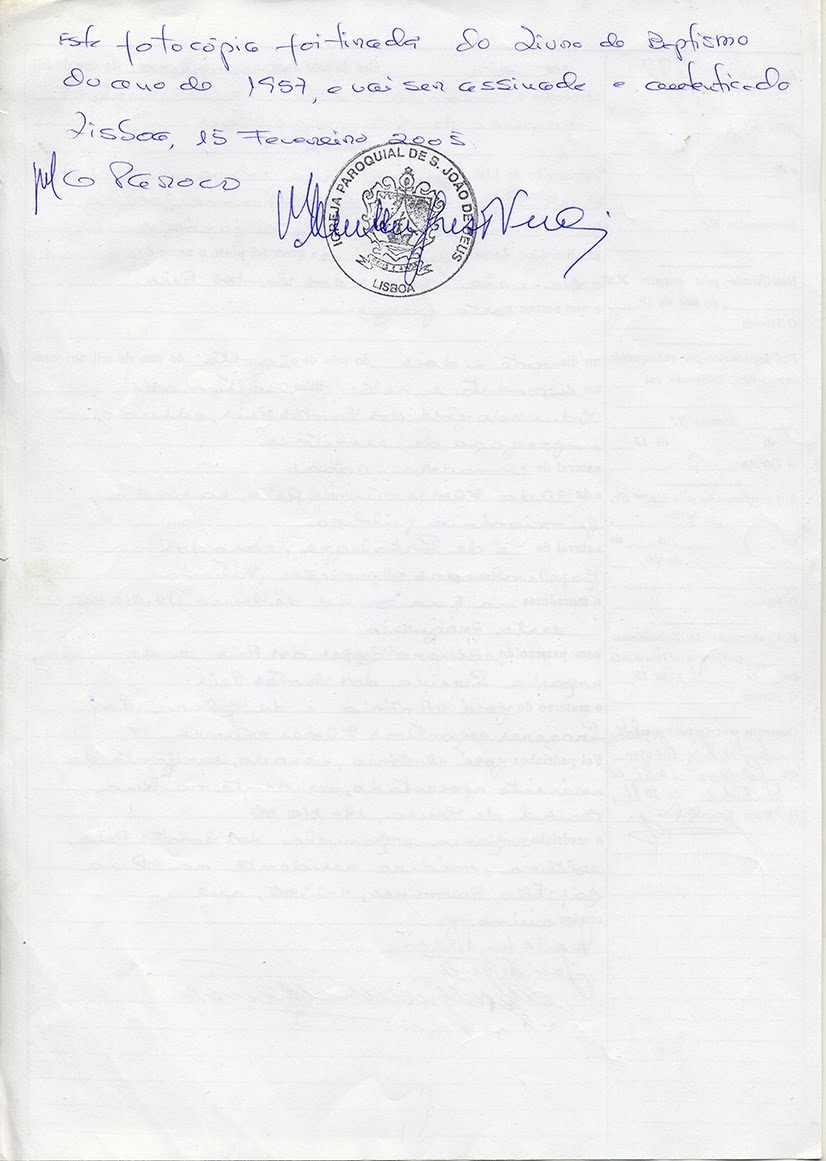 Estava à espera de outra coisa e como sou novato no paradeiro, não entendi tudo e só fiquei a saber que o teu baptizado foi no mesmo dia do meu casório.